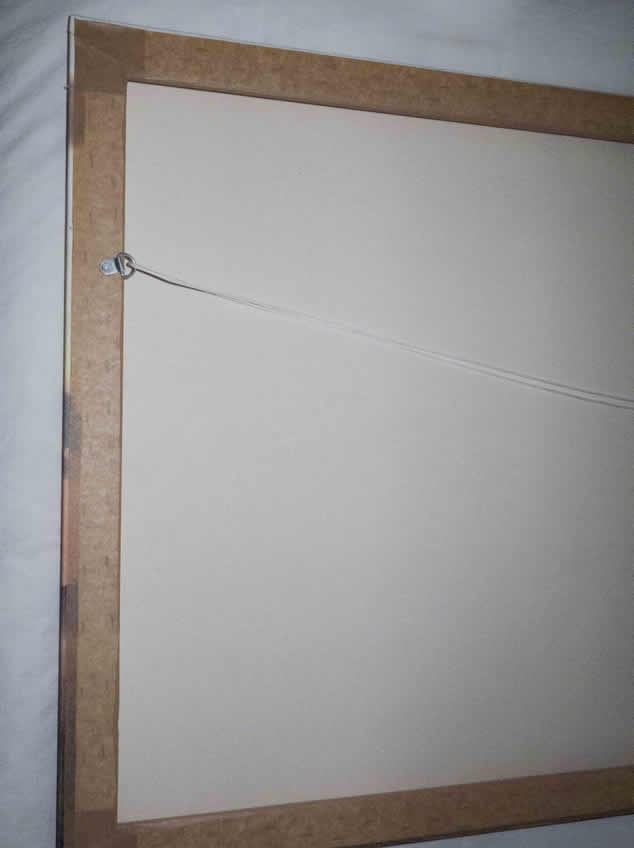 The reverse side of all framed prints are fitted with two D rings and nylon cord for hanging.